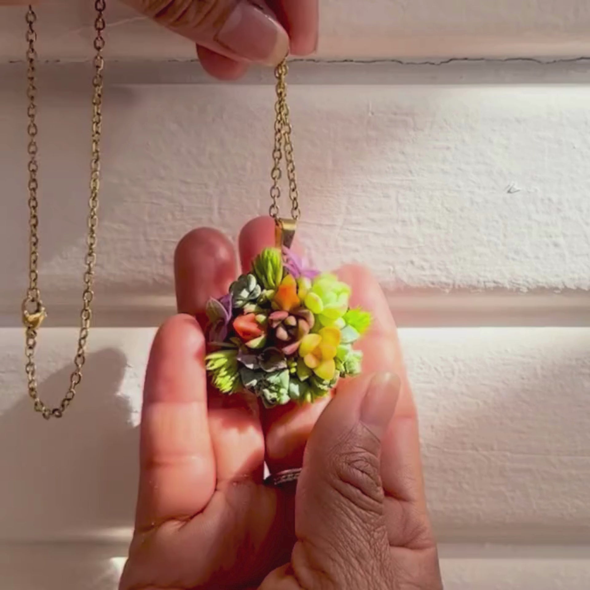 Each pendant is made to order. Carefully HANDPICKED and HANDCRAFTED with living succulents, it’s the perfect way to bring nature and sustainability into your style. For extra peace of mind, your jewelry piece comes with an easy-to-follow instructions card, so you know exactly what to do to continue growing them.